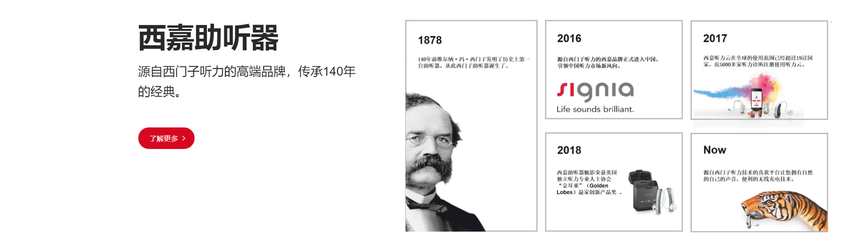 廈門悅聆聲聽力科技有限公司,德國西嘉助聽器廈門地區(qū)的授權(quán)服務(wù)商。公司經(jīng)過十六年的發(fā)展,目前擁有多名國家職業(yè)三級和四級助聽器驗配師,助聽器驗配中心的服務(wù)網(wǎng)點目前分布在廈門、漳州和莆田等城市,“專業(yè)化的驗配專業(yè)化的服務(wù)”是公司每位驗配師一直堅持的職業(yè)原則和宗旨。西嘉助聽器源自西門子聽力,傳承140多年的經(jīng)驗技術(shù),在聽力研究、助聽器研發(fā)和生產(chǎn)等領(lǐng)域享有盛譽。其足跡遍布全球100多個國家和地區(qū),不斷創(chuàng)新,竭盡推動聽力行業(yè)發(fā)展。西嘉助聽器繼承了西門子聽力逾百年的科技精髓,擁有強大的研發(fā)創(chuàng)新能力。我們將利用這些先進的產(chǎn)品技術(shù)為廈門地區(qū)聽力損失患者提供專屬個人的聽力解決方案,為您解決聽力上的煩惱,重回有聲的精彩聽世界。